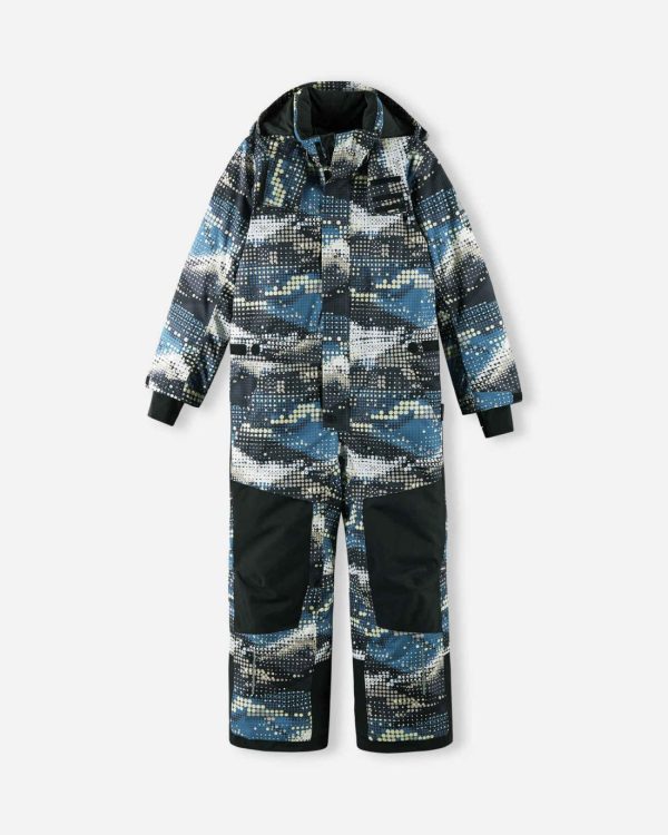 Keep your young adventurer warm and dry in the kids waterproof snowsuit Lappea. Its waterproof construction, complete with taped seams, ensures a dry and comfortable experience even in the harshest weather. The durable material with light insulation provides perfect warmth without compromising on breathability. With ski-friendly features, very durable reinforcements, and a water and dirt repellent finish, this suit is perfect for active kids. The safe, detachable hood, adjustable cuffs, and waist allow for a custom fit. It also boasts zip pockets, a skipass pocket, and snowlocks at leg ends. Your child will also be more visible in the dark, thanks to the reflective details.