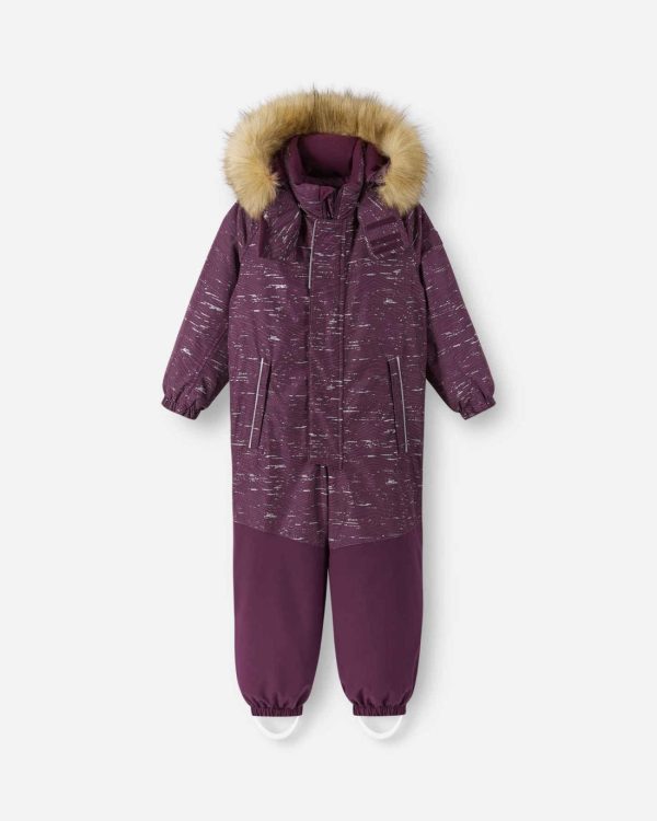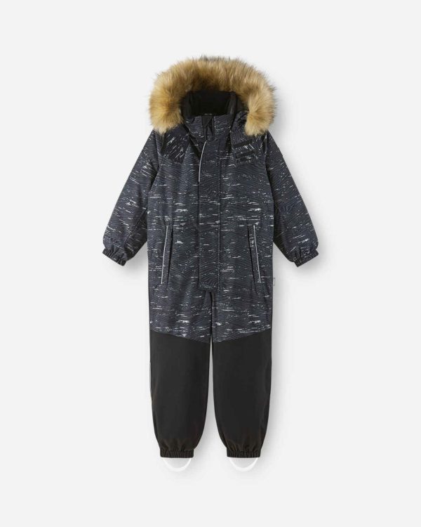ReimaTec kids’ warm snowsuit with a reflective all-over print and reflective details. Fully water- and windproof, as well as breathable. Straight fit.