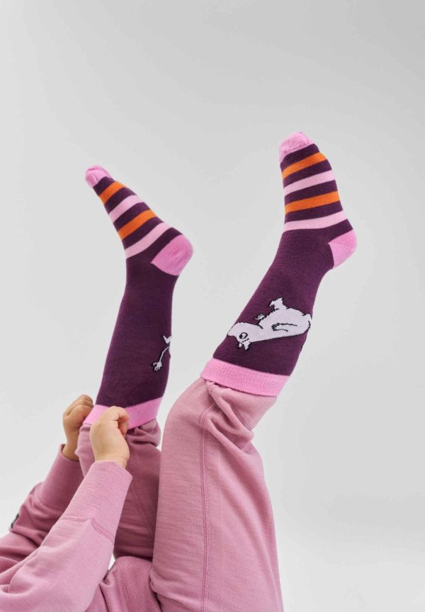 Socks | Kids Reima Moomin Randig Merino Wool Socks Deep Purple